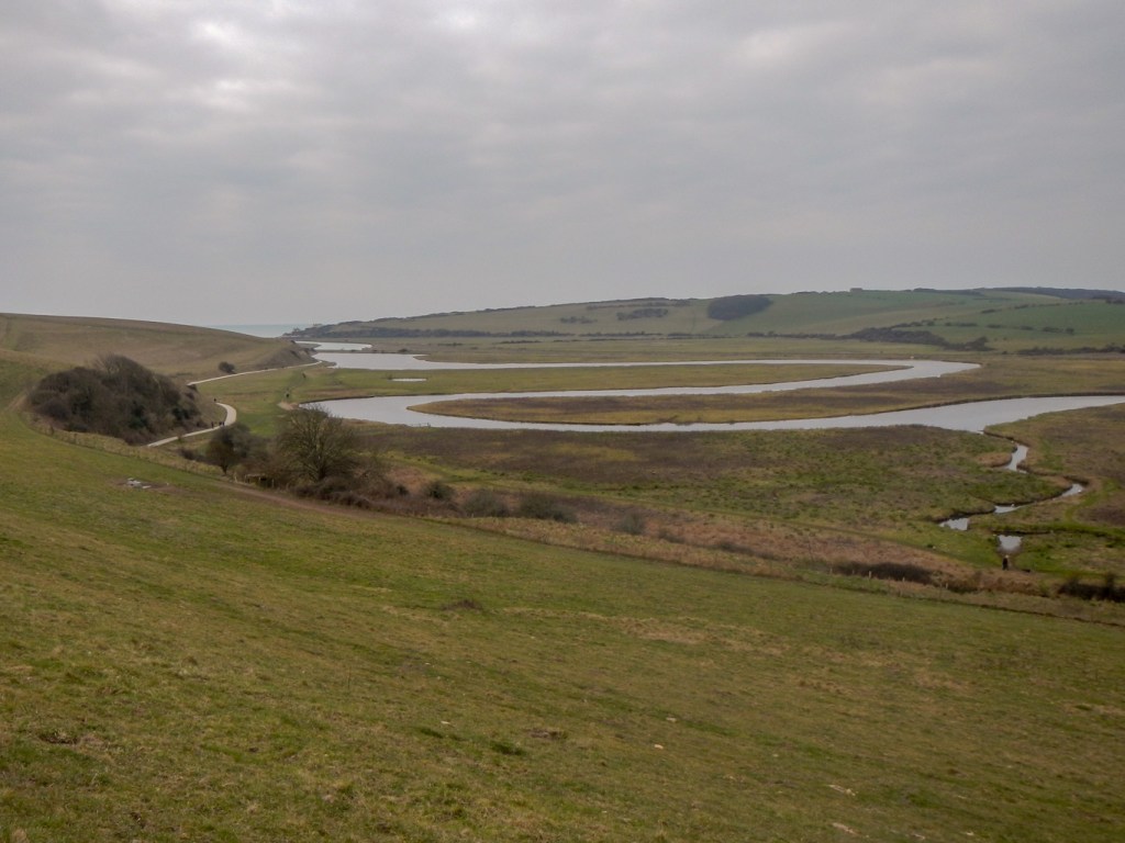 It was a longer journey than I had expected from the Dungeness area so I wasn’t dropped off at the car park at Exceat near the meandering Cuckmere River until almost 10:30am. Despite the late start, I avoided the quicker but busier path near the river and started climbing almost immediately over Exceat Hill, where the site of the eleventh century church is marked. I was rewarded for my efforts with fine views into the Cuckmere Valley.