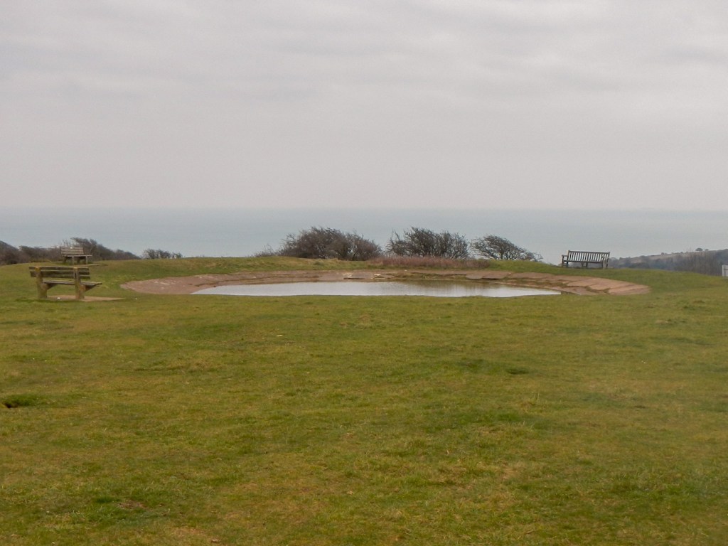 The inland route is undulating like the coastal route. The rolling chalk downland allows fine views. I stopped for lunch on an exposed area next to a dew pond as it was scenic and I spotted a convenient bench. Unfortunately despite adding an extra layer of clothing, the bitter wind led to me feeling extremely cold by the time I restarted. It took a good couple of miles to warm up again.