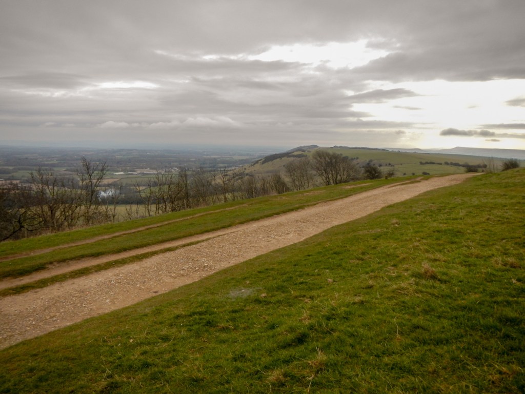 The car park is above the 230m contour line so it’s only a trivial ascent to the fine viewpoint of Ditchling Beacon the highest point in East Sussex (248m). The weather was cold and windy with a fair bit of cloud but good views. The summit is surrounded by the rectangular outline of an Iron Age hill fort.