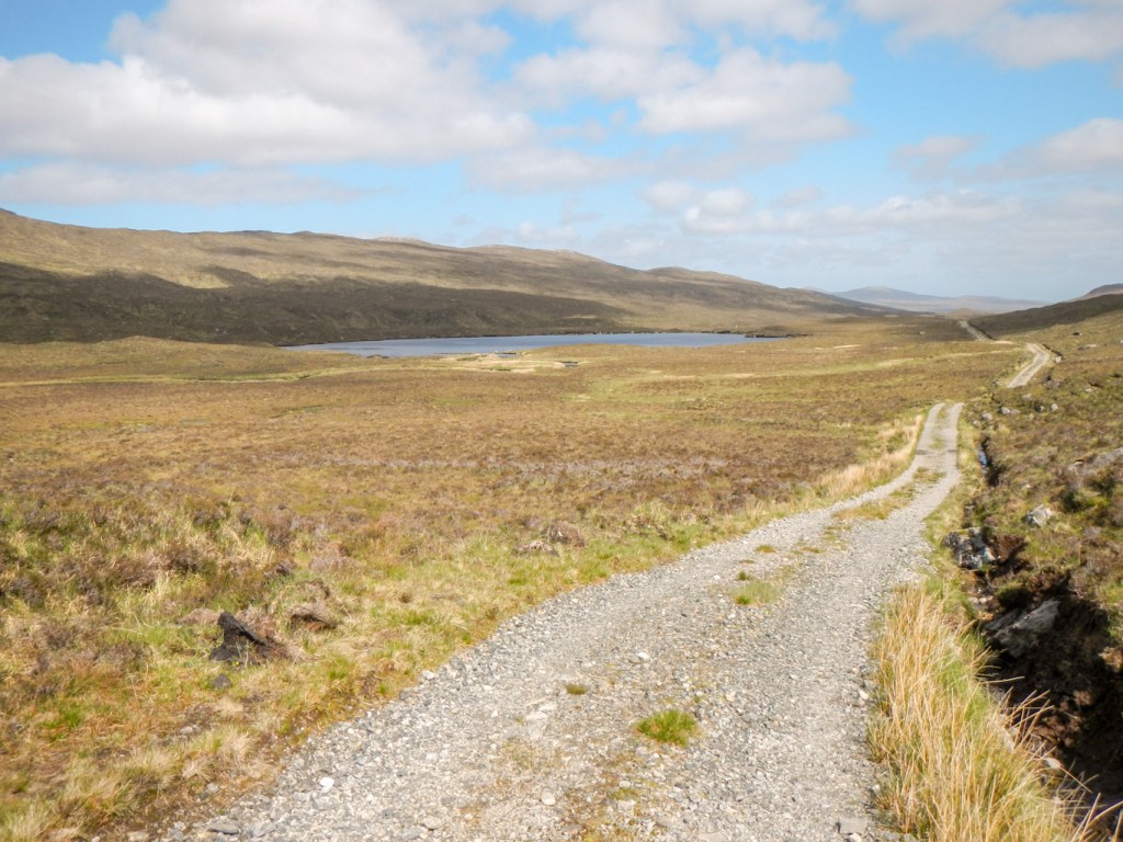 I continued along the track past a fishing bothy on the shores of Loch Scourst and eventually reached the end of the track near Loch Bhoisimid.