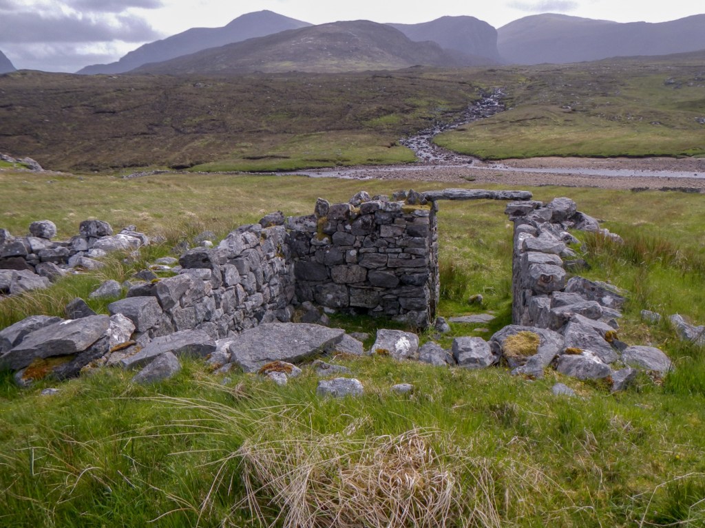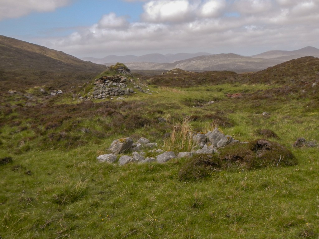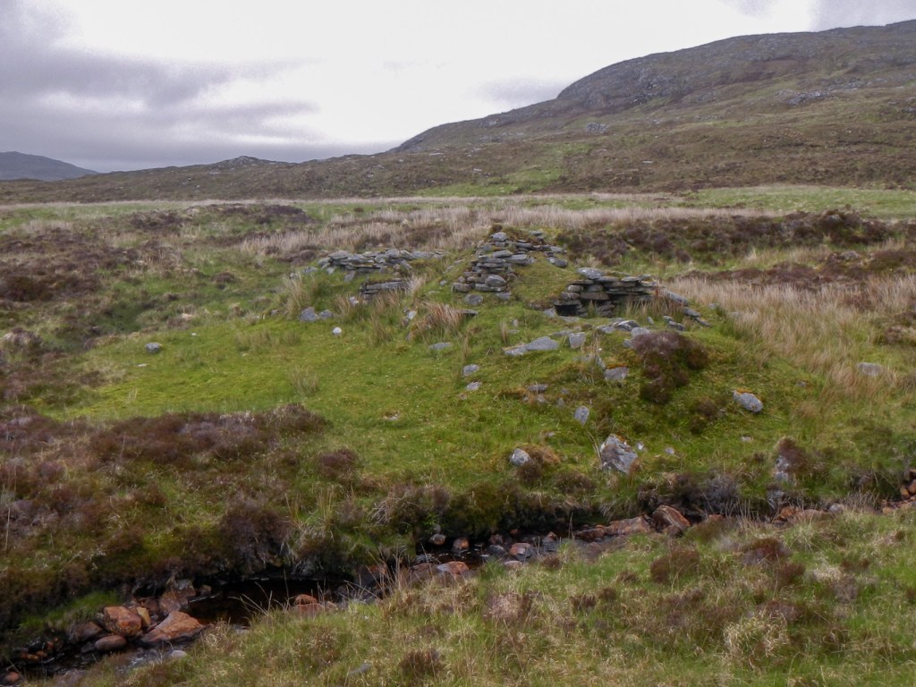 I walked on up to a row of ruined shielings and then down on to the old lazy beds with the undulations preserved.