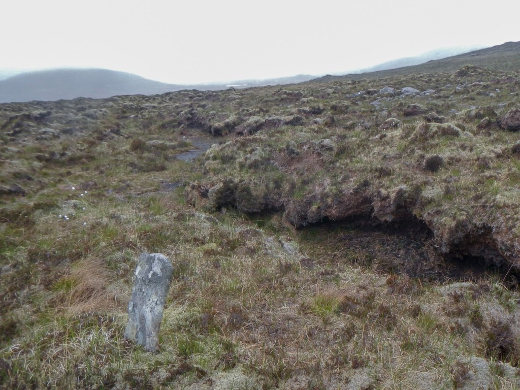 Initially I struggled to follow the path. I remember that last time I had walked this way the weather had turned rainy and I hadn’t found a path at all. As I continued, I spotted a few stones placed vertically on the ground and very occasional cairns; there were also a few vertical white posts on some of the cairns and stones. I had found the old way across the moor, although it would be hard to describe it as a path.