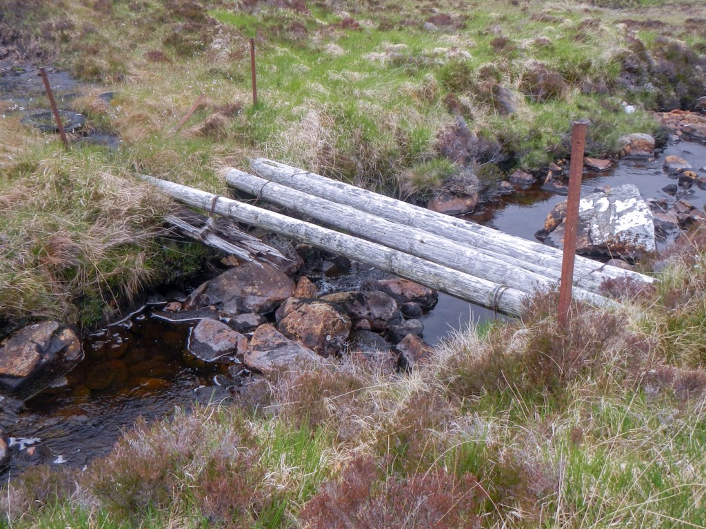 From this point, there was a track which had been used by wheeled vehicles in the past. Unfortunately there is no longer a footbridge crossing Abhainn a Loin to its west bank. Hence I walked across boggy ground staying on the east bank. The footbridge marked on the map near Loch Morsgail is still in place. However in order to avoid walking through the land close to the lodge, I followed the footpath round the south then east sides of the loch to a good footbridge at the north east extremity of the loch. From here it was an easy walk down a surfaced track to reach the public road.