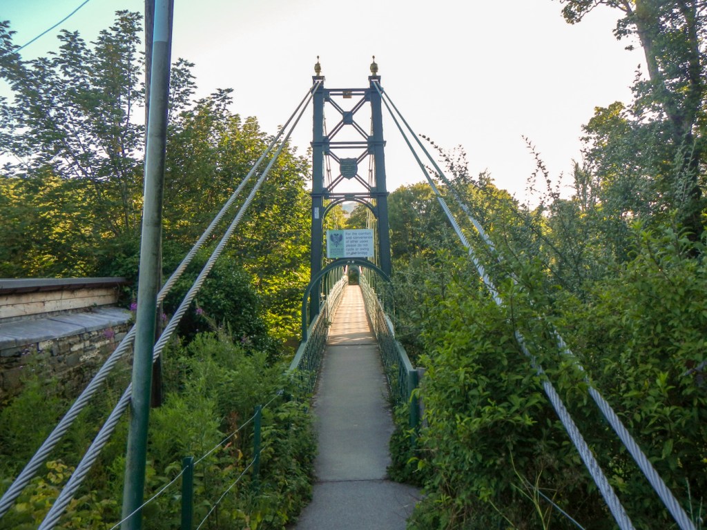 I hoped to find a spot to camp in the Glen. I found a place close to the river and some woodland but also rather near to some farm buildings. However on investigation, the buildings were clearly uninhabited and rapidly becoming ruins. There was even space to pitch my tent in the old gardens but I opted for the spot I had first found next to the river and what appeared to be a little-used track by a bridge. The bridge had a safety warning attached: “not to be crossed”. I think it had been the shortest route from the road to the house used when the house had been inhabited.