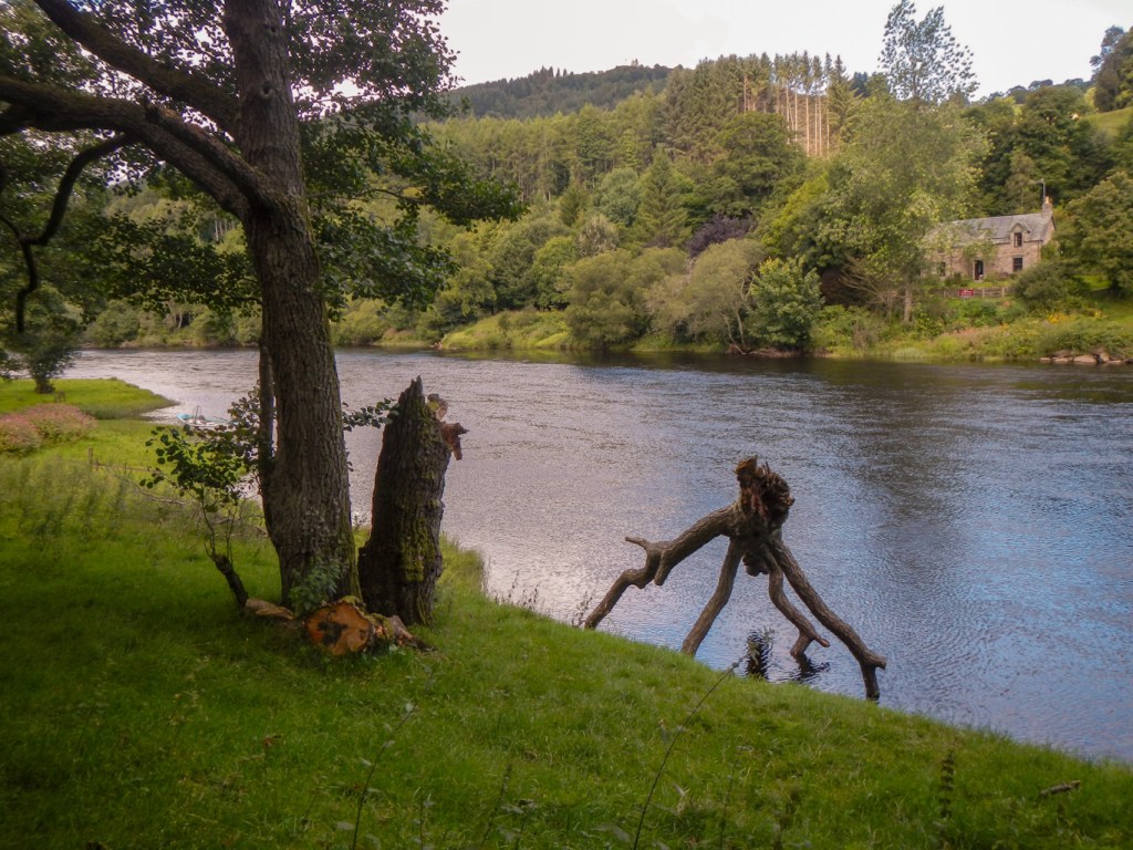Having crossed the highpoint on the track, there were views of the Tay valley before descending to Grandtully and walking close to the River Tay, initially along the route of an old railway line, to Aberfeldy.