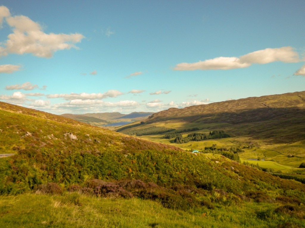 As I climbed, I had good views of Loch Tay and later, having crested the hill, of the reservoir Lochan Breachlaich. Having reached the dam, the track turned into a service road. This road led all the way to Killin. However I didn’t need any further provisions so I turned off on a track to bypass the town. I also hoped that I would find a suitable place to camp – as long as I could get away from the ants!