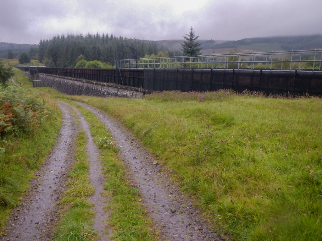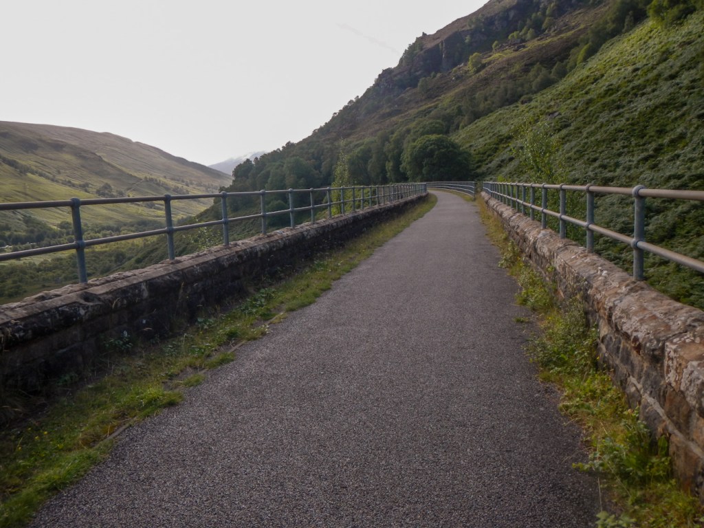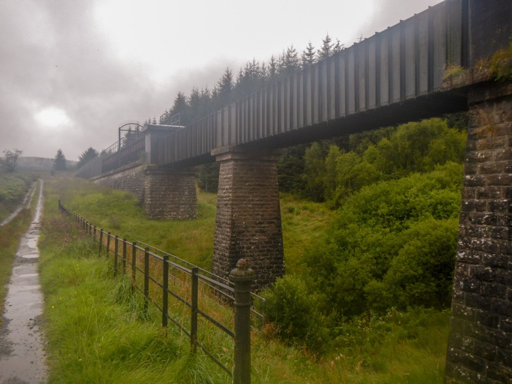 The rain started soon after. There were heavy showers with less heavy rain between them. There were also many patches of blue sky but I seemed to be constantly under a rain cloud. I passed the enormous Corrie Aqueduct and many domed shafts from the Victorian Loch Katrine water scheme built to supply fresh water to the people of Glasgow. The bridge is 304m long and Category B listed.