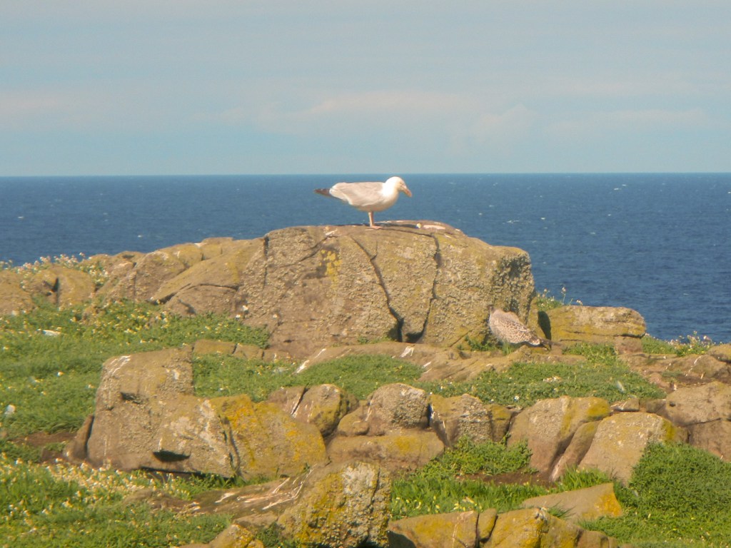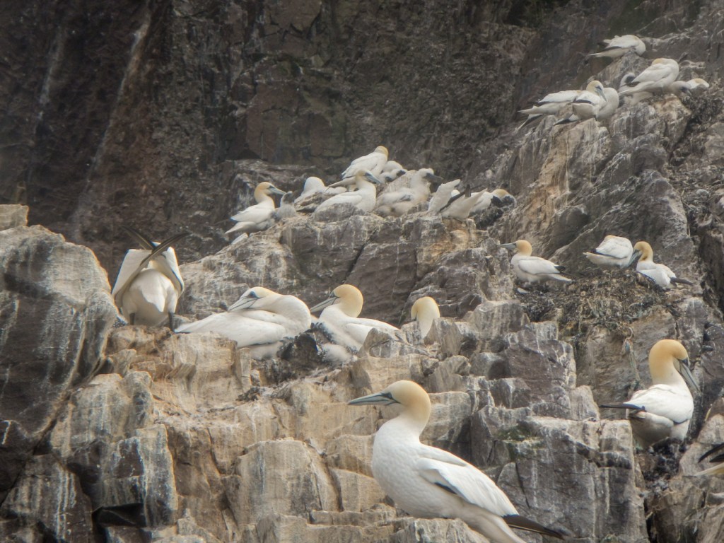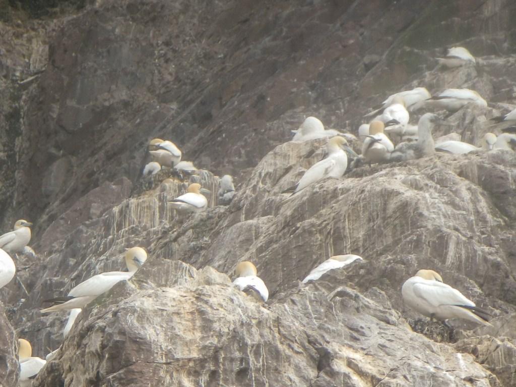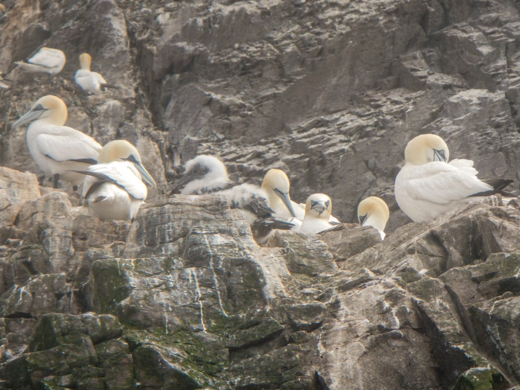 We saw adults pointing their heads upwards as a signal that they were flying off the rock to fish for food and leaving their partner in charge of the chicks. We also saw gannet partners rubbing their beaks together as they re-met. We were given plenty of time to view this awesome spectacle before voyaging on across even rougher water towards our eventual destination: the Isle of May.