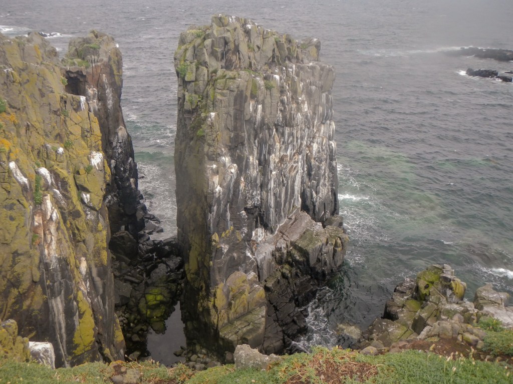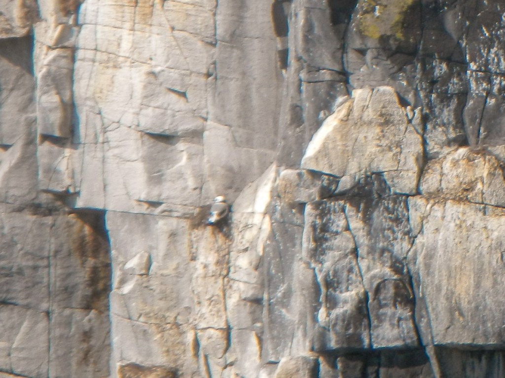 We also saw black backed gulls, fulmars and shags. Pete warned us not to annoy the fulmars as we could get covered with a noxious smelly oil and wouldn’t be allowed back on the RIB!! – the smell can’t be washed away. Pete pointed out a kittiwake nest on what looked to be an impossibly narrow ledge on the cliffs. Sadly the kittiwakes proved particularly susceptible to Avian Influenza and were decimated recently, although the puffins were almost immune.