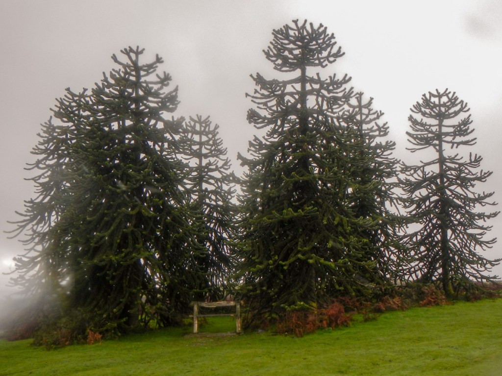 I passed a group of monkey puzzle trees which looked rather incongruous on open hillside near the English / Welsh border. I’ve found out that Dick Banks planted them on top of the hill, having seen similar trees growing on mountain tops in Chile in the early 1990’s. The Banks family bought the estate including the fortified manor, Hergest Court, in 1912. It is still owned by the family, five generations of whom have now gardened and planted exotic trees on the estate.