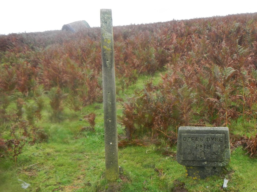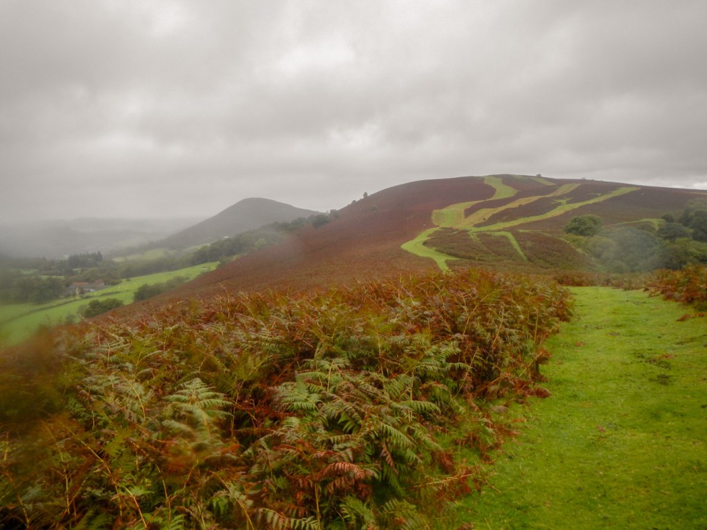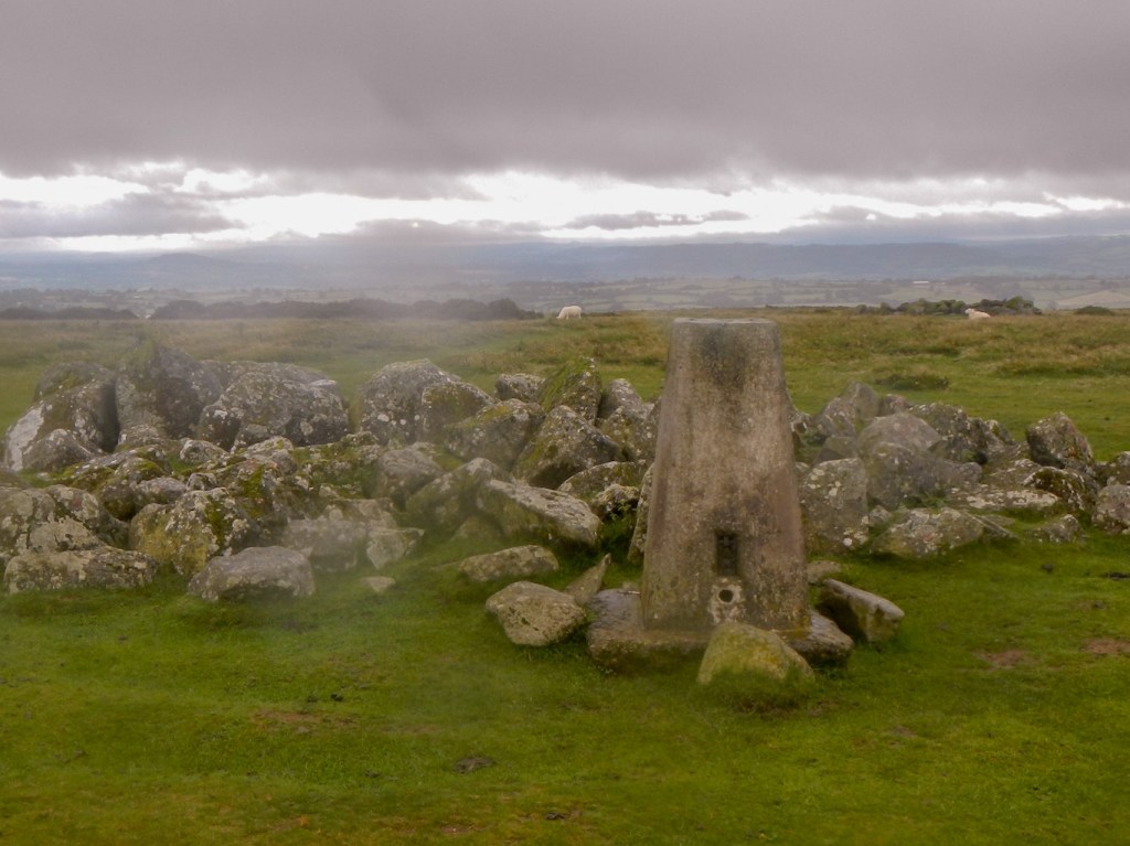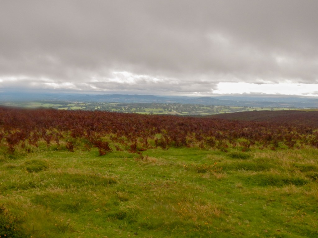 I diverted from the signed Offa’s Dyke trail to reach the trig point at the summit. There were views back to the Shropshire hills and forward to the Welsh hills but unfortunately it was looking increasingly as if I could expect to get wet.