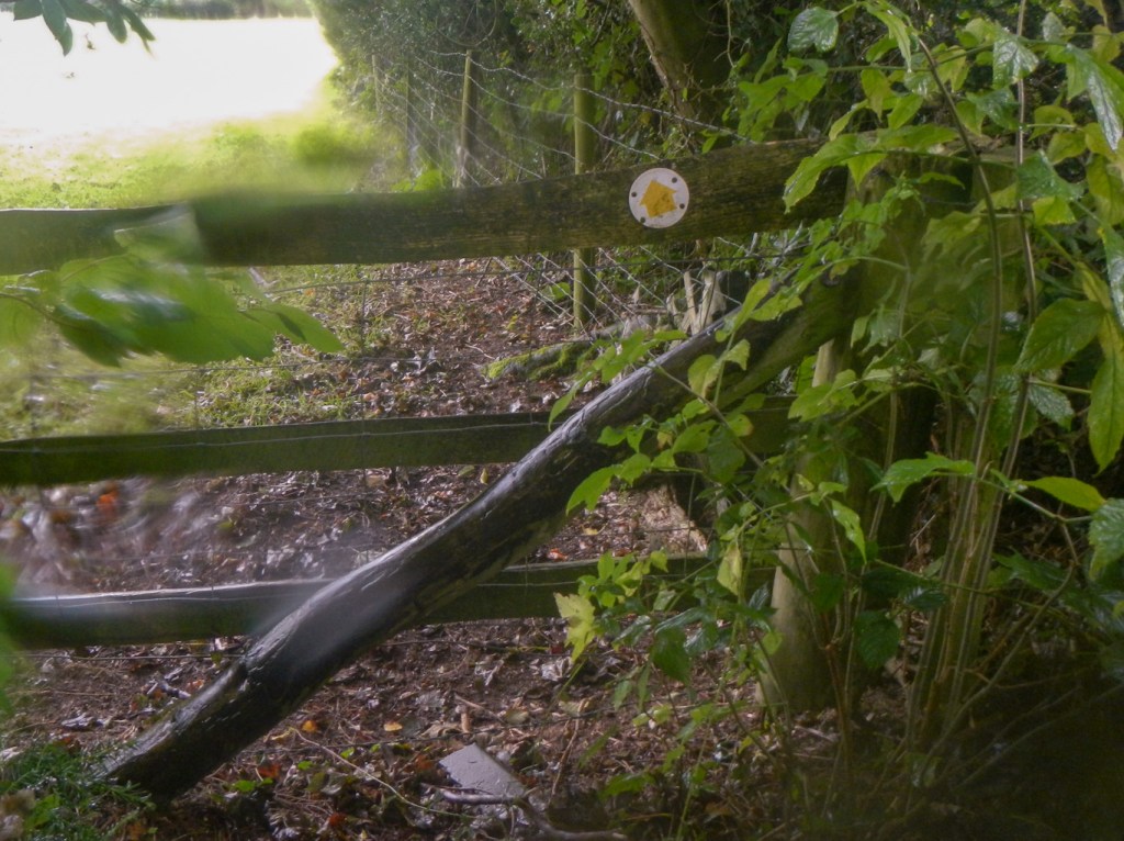 The route went along a signed bridle path with an enormous number of gates to open and close. It was slow going as it seemed as if all the catches operated differently and many of the gates needed lifting as they sagged after being opened; some were only closed using rope or string tied in convoluted ways.