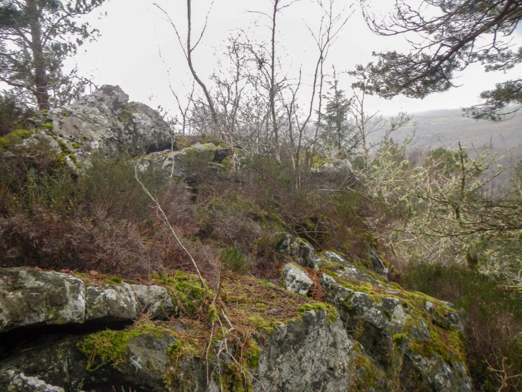 I descended to the main path and noticed two further piles of stone, which are actually Bronze Age Cairns. From here I found vague paths through the wood heading in the direction of Hepstock Rock. This tor isn’t included on the LDWA list although it is huge; however it’s difficult to appreciate the size since it’s on a very steep hillside and cloaked with trees and bracken.