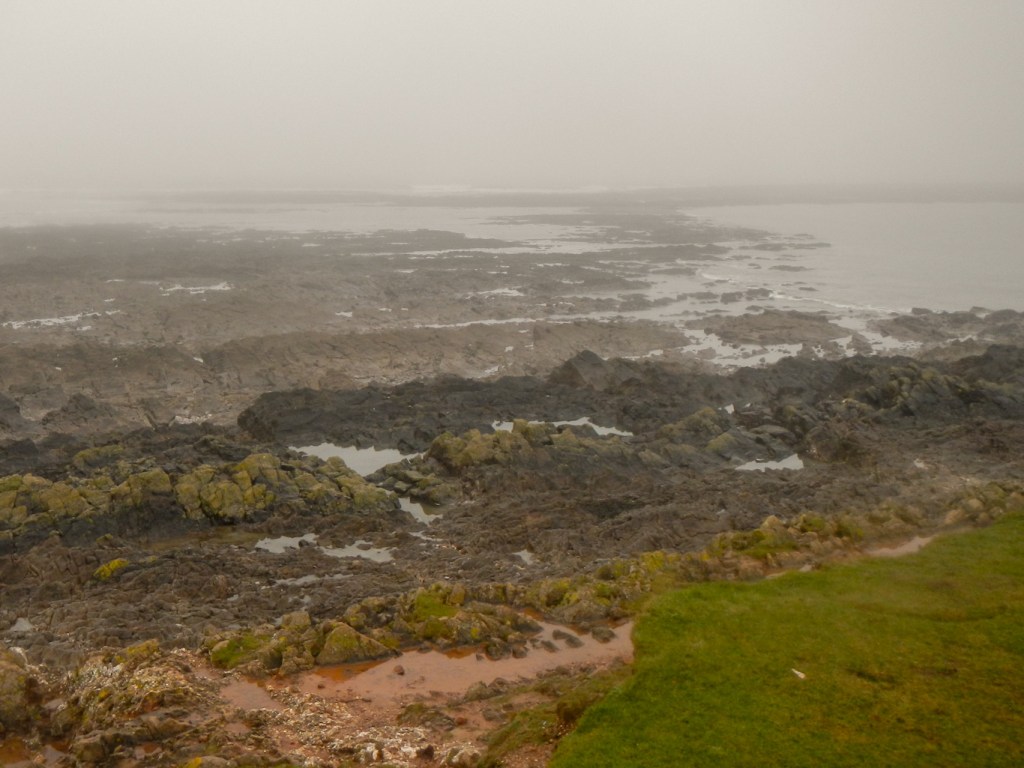 My aim was to arrive at the start of the rocky tidal causeway at 1pm, 2.5 hours before predicted low tide and hence maximising my safe time window. I didn’t want my adventure to be ruined by unexpected traffic problems so I arrived at the National Trust car park just before 10.30am. This gave me just over a couple of hours to explore the area before heading off along the coast path to the starting point of the causeway. I was surprised that despite the very damp and misty conditions there were already quite a number of cars in the car park.