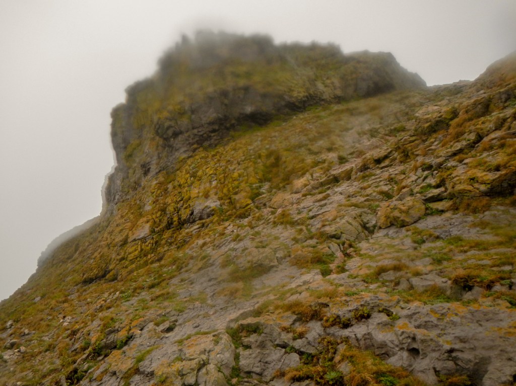 I followed the steep path that ascends the Inner Head, followed by a short length of ridge. There was even a view of sorts from the summit, the best view I had seen all day.