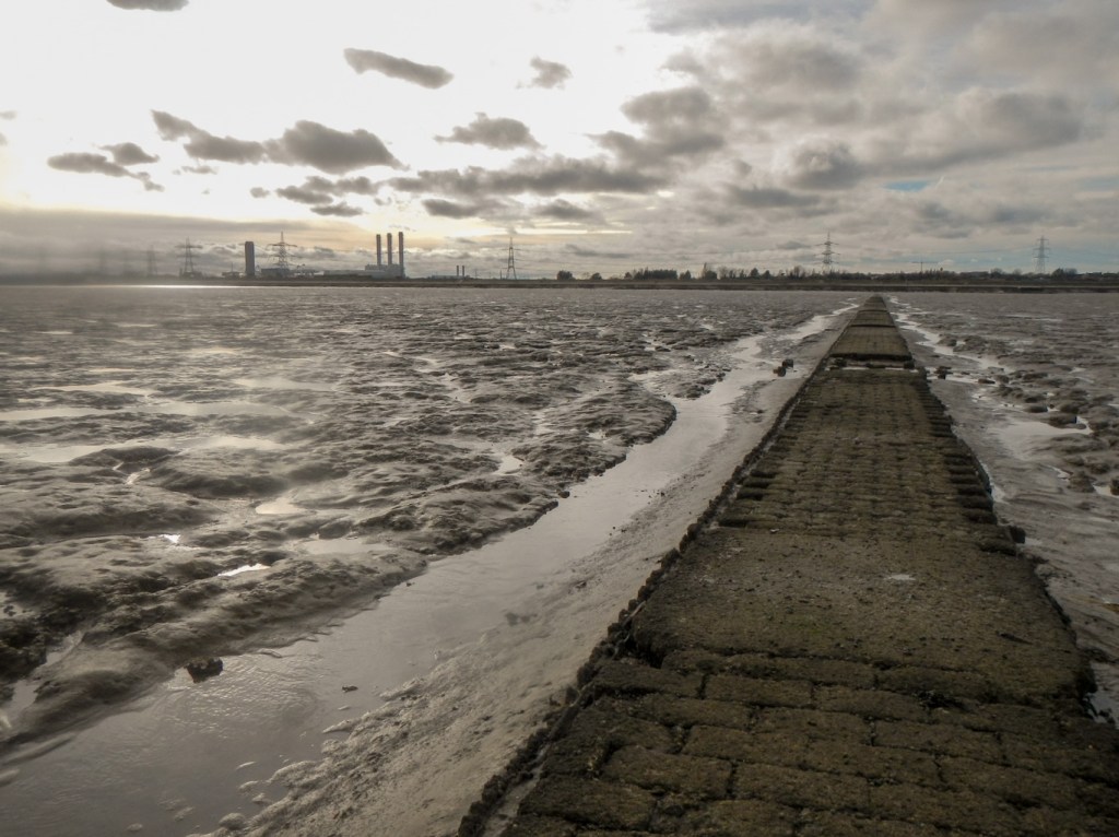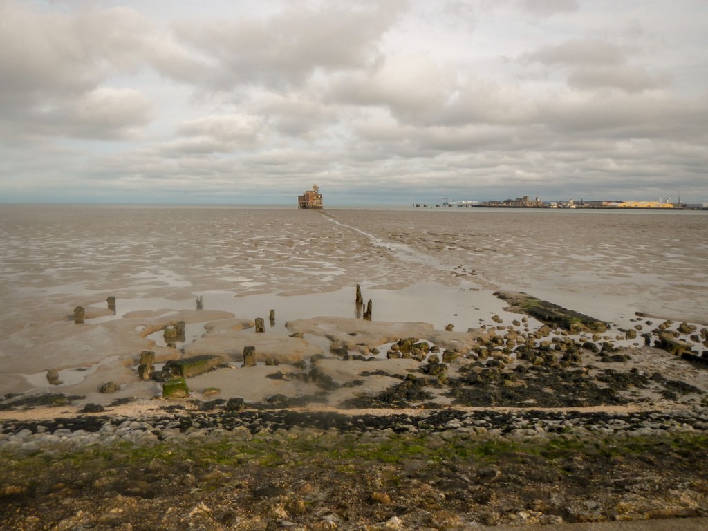 I wanted to walk to Grain Tower a mid-19th-century gun tower accessible only at low tide along a quarter mile long causeway. The causeway isn’t intact and I would have got wet feet if I hadn’t been wearing my walking boots and gaiters. However the ground was firm along the line of the causeway so I wasn’t in danger of sinking into the mudflats.
