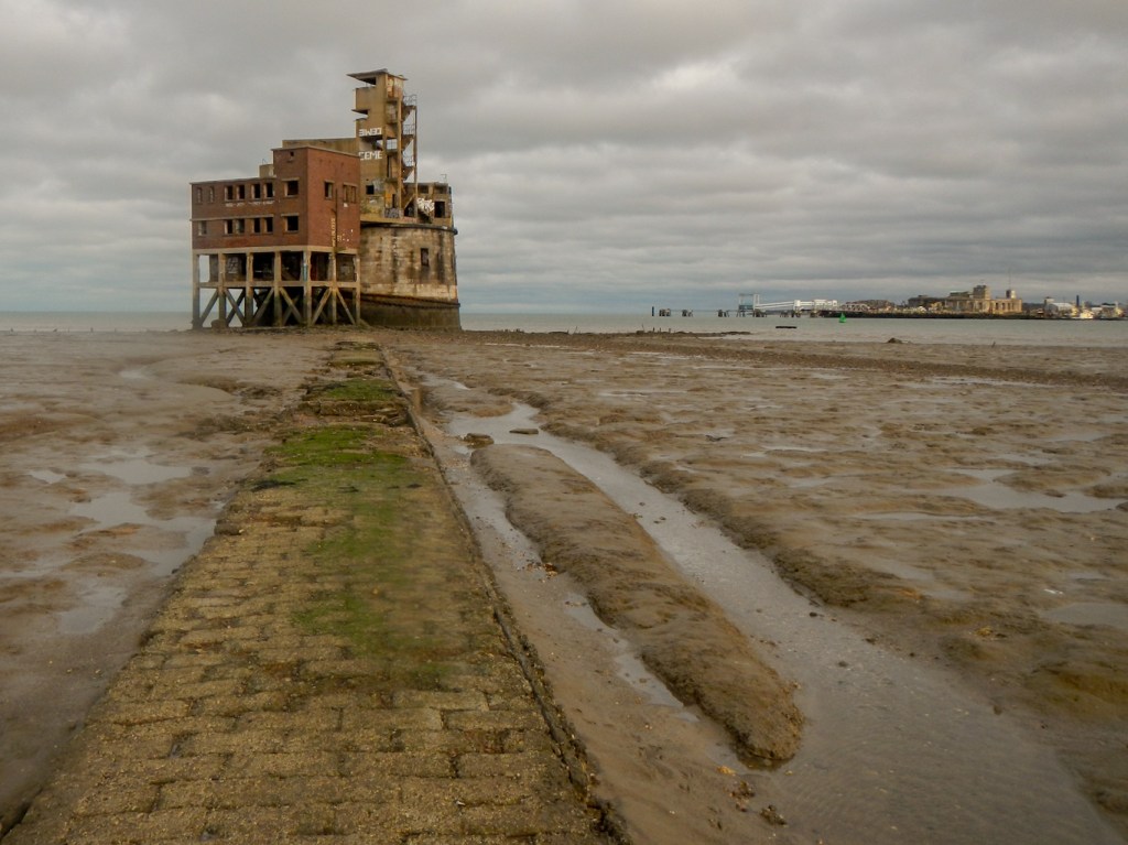 Grain Tower was built along the same lines as the Martello towers that were constructed along the British and Irish coastlines in the early 19th century and is the last-built example of a gun tower of this type. It was designed to protect the important dockyards at Sheerness and Chatham from a perceived French naval threat during a period of tension in the 1850s. Over the water I could see Garrison Point Fort at Sheerness.