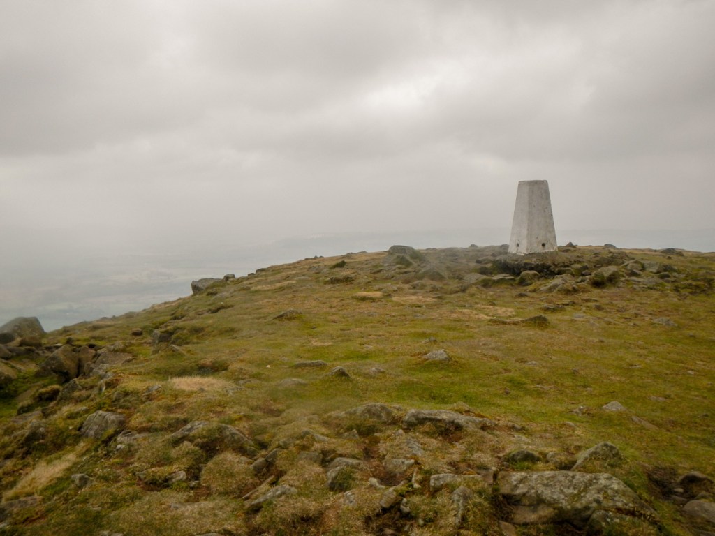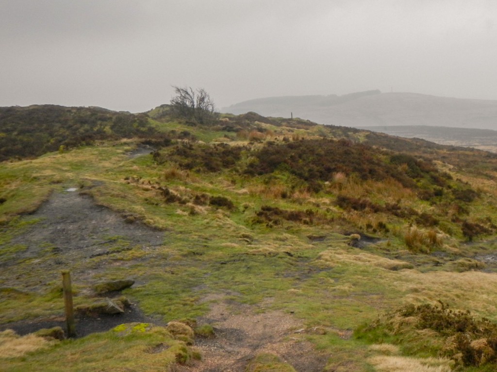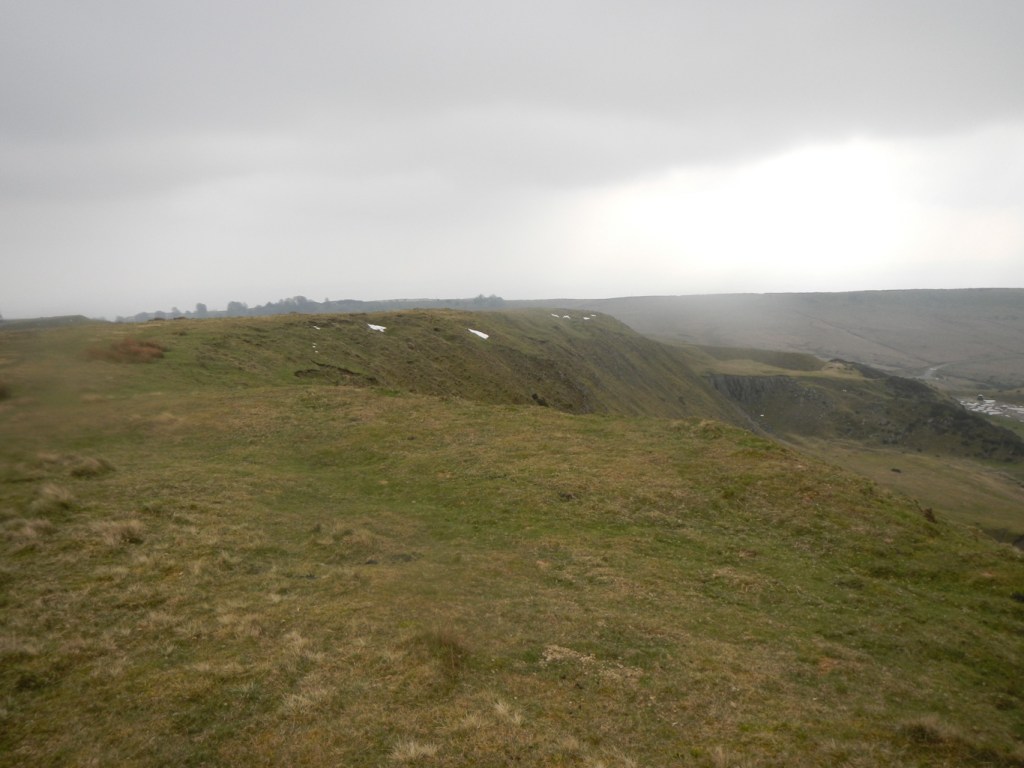 It’s a bleak landscape, but I could envisage that the views on a better day, especially looking towards Wenlock Edge, would be superb. I descended to the col at Five Springs then climbed again to the south summit of Brown Hill – Clee Burf. It’s just as good a view point despite being 20m lower than Abdon Burf. The Iron Age hill fort here has also been largely lost to quarrying activity.