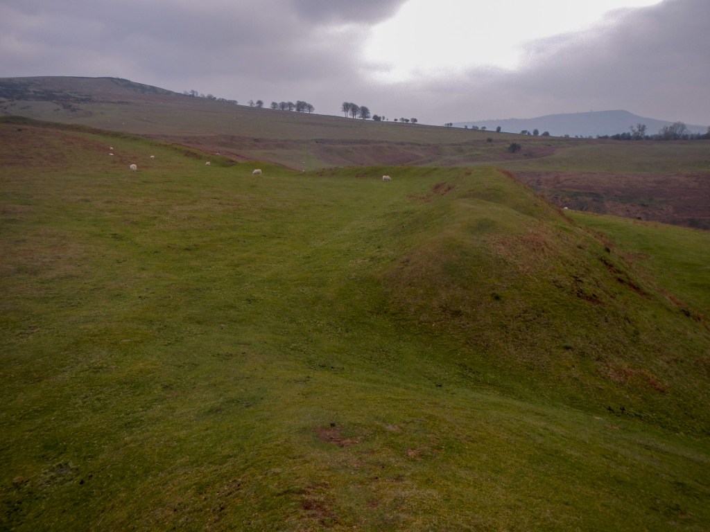 I started the long trek back towards Brown Clee but veered in a more westerly direction to reach Nordy Bank where the Iron Age hill fort has not been subject to the ravages of mining. The earth ramparts are huge and impressive.