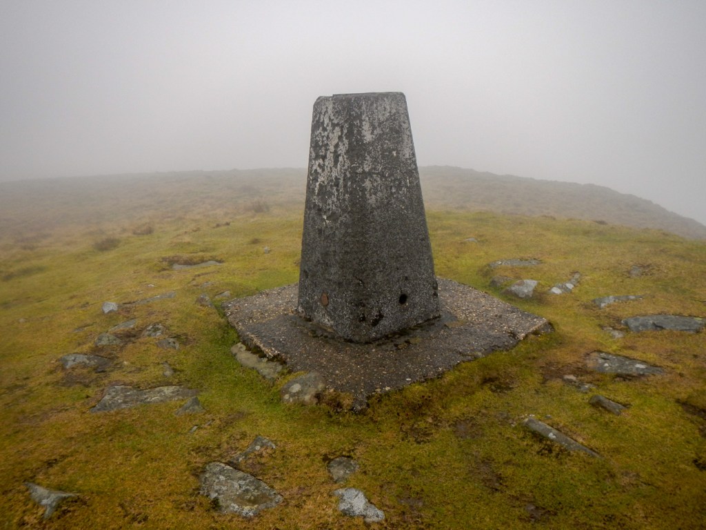 I made my way towards Cadair Berwyn, the highest I would be all day and indeed the highest top in the range at 832m but not at the trig point which is only 827m. There was a shelter just before I reached the trig point but I continued on. This was definitely well into the cloud and so missed the amazing views that are possible on a clear day.