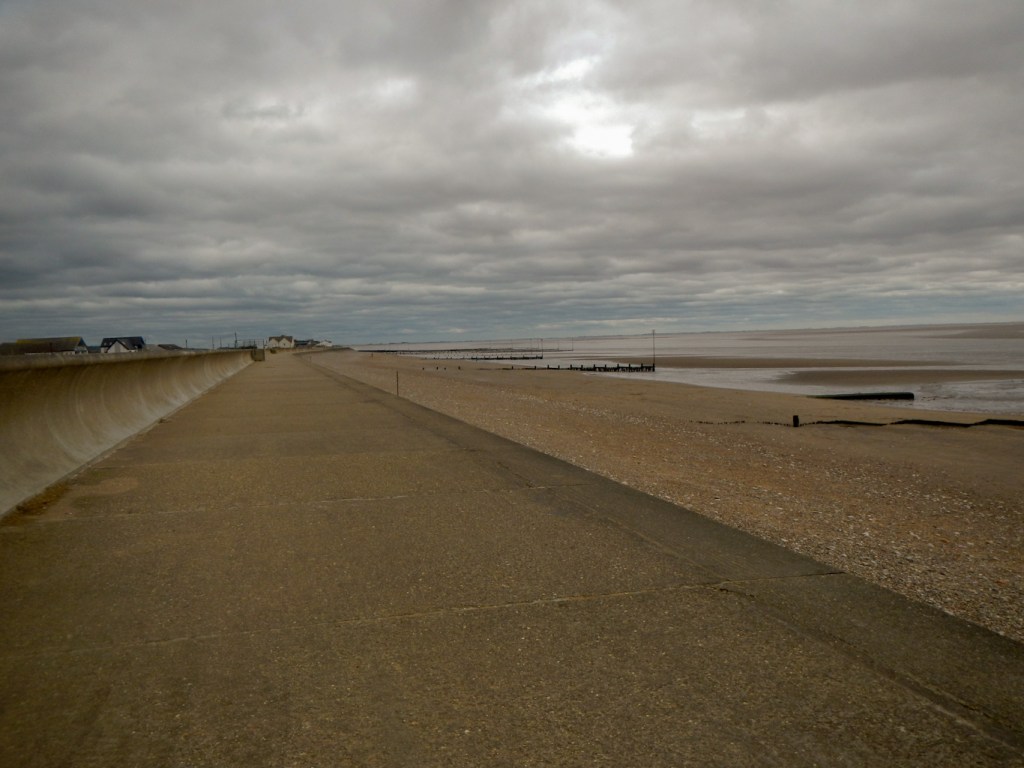 We decided it was too windy to eat outside so retreated into one of the many popular cafés for lunch. My husband had bought a return bus ticket to Hunstanton but I continued my walk after lunch. The wind seemed even more blustery or perhaps I was walking in a more exposed place. It took all my strength to remain upright and walk as near as possible in a straight line. Fortunately I was being blown inshore rather than off the precipitous top of the promenade.