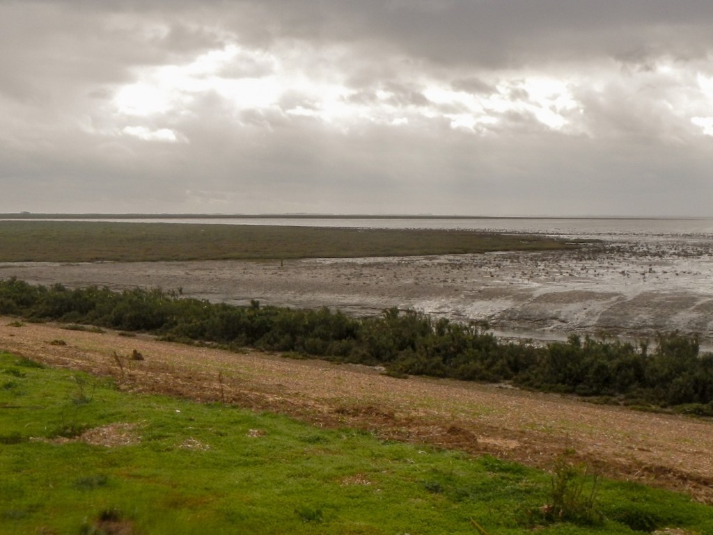 Eventually the route turned inland for a few hundred yards or so – this was easy as the wind helped my progress. However the respite was short and the path turned to be parallel to the coast again, this time following a new route called the “Elizabeth Way” (Heacham to Kings Lynn via Sandringham) as well as the Norfolk coast path / King Charles III England coast path. The official path was on the top of dykes all the way to Snettisham but, in many places, it was possible to follow tracks just behind the dyke and so sheltered from the unpleasantly forceful wind.