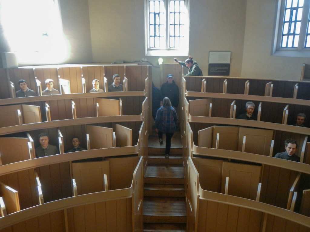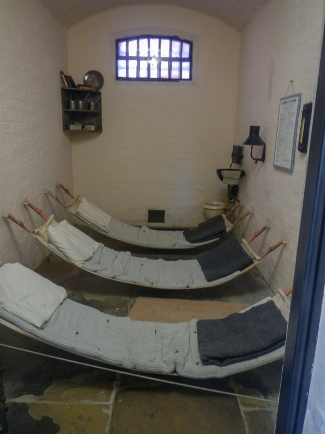 Separate cells were provided with a sink, toilet and hammock so that there was no need for prisoners to leave them except for exercise and fresh air in the exercise yards, and the daily chapel service led by the prison’s chaplain. We were informed that the chapel is the only example of its type still in existence and we didn’t tell them that we have visited a very similar example in Tasmania at Port Arthur.