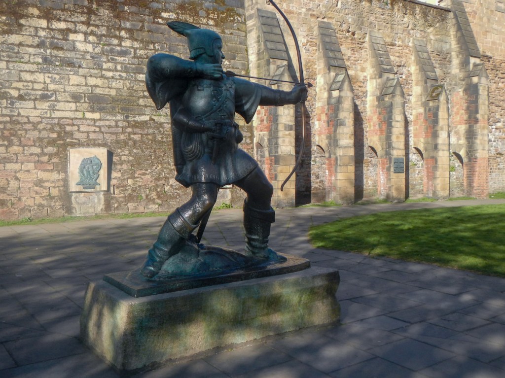 My plan was to walk along the extremely convoluted 110mile route of the long distance Robin Hood Way footpath plus a few deviations, visiting many of the sights attributed with Robin Hood connections. Actually, despite all the connections, it seems that the evidence points to Robin Hood being more myth than legend. Historians delving deeper into the Middle Ages have uncovered more than one outlaw called Robin Hood over a period of over one hundred years. Whether they were bandits based in a forest and clothed in Lincoln green with a merry gang of companions is unknown. It also isn’t known whether they regularly stole from the rich and handed over the stolen goods to the poor. However, it’s a fine story that has stood the test of time and led me on an interesting expedition around a variety of the lanes, byways, footpaths, cities, towns and villages of Nottinghamshire.