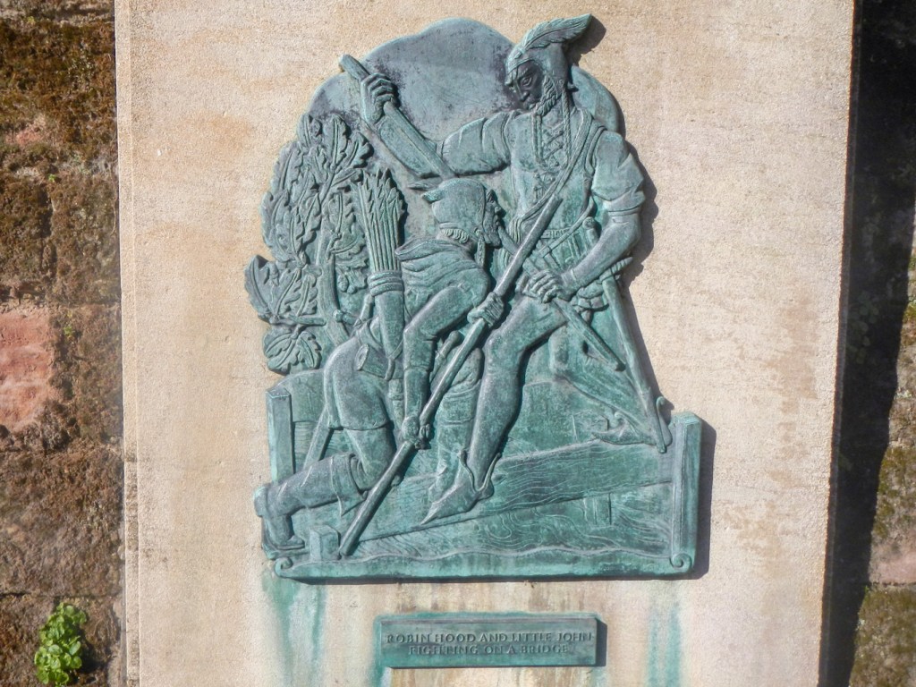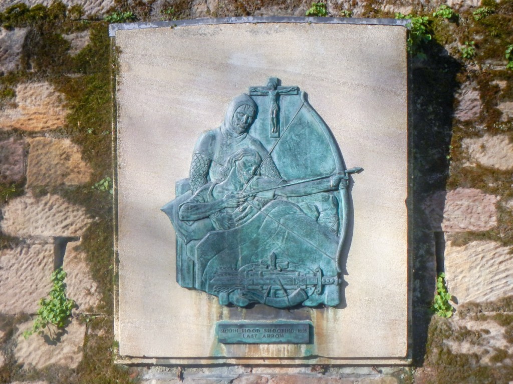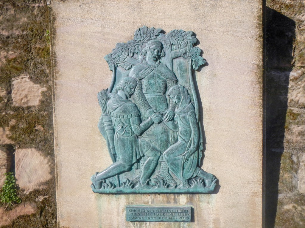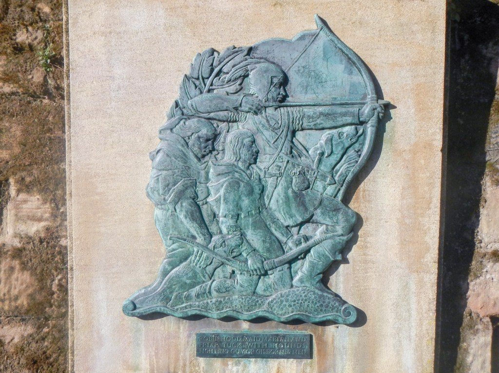 I walked round to the open area of Castle Lawn where there is a statue of Robin Hood by James Woodford (1952) and plaques depicting scenes in his life.