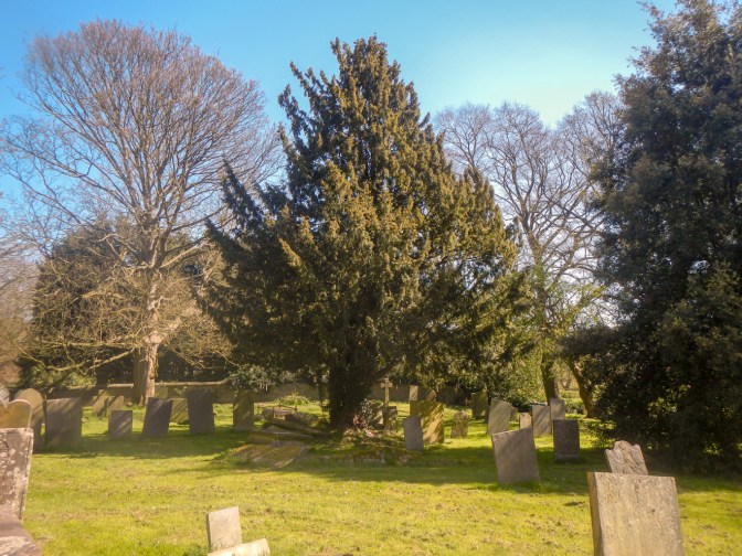 The route continued on paths over farmland and eventually I reached the B683 road about 2km north of where I had left it several kilometres of walking previously – the route is convoluted! I decided to make a detour to the north end of Papplewick village (even closer to where I had been a few hours earlier) so that I could visit Papplewick Church. This is the church where legend says that Robin Hood’s minstrel Alan-a-Dale was married by Little John. The church also contains early medieval grave slabs for forest wardens, which are carved with bow and arrow, sling, knife and hunting horn. Sadly I couldn’t see these as the church was locked; clearly there is concern about potential vandalism and burglary – multiple signs explaining that there is 24 hour CCTV and others stating that there is no lead in the roof. However I found a nice seat in the churchyard where I ate lunch.