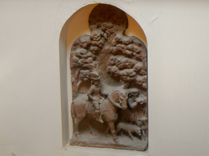 I soon reached Archway House, built by the fourth Duke of Portland in 1842. The façade has some Robin Hood sculptures similar to the ones I had seen already at Bestwood. The turf “ride” running through the archway was intended to enable the Duke to drive from Welbeck to Nottingham but actually no more lodges were built along the route – the spread of railways made it unnecessary especially as the Duke bought his own railway carriage.