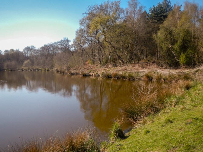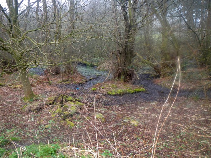 Friar Tuck’s well is marked on the 1:25,000 map near a lake but is apparently overgrown and hard to locate. Moreover there was a path closure and diversion in place…. I wandered on along the footpath after the diversion as far as Cave Pond – the friar was reputed to live in a cave near the far side of the pond, now in the grounds of Cave Park Lodge.