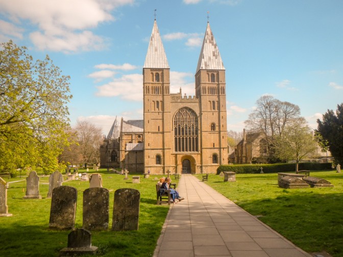 Of course there is also the magnificent Minster building itself. the highlights for me were the intricate stone Chapter House carvings of green men, plants and animals – the Leaves of Southwell, the magnificent modern stained glass of the Great War Memorial Window designed by Nicholas Mynheer to honour local people who have lost their lives in conflicts since the First World War, and the altar rails designed by Robert “Mouseman” Thompson with tiny mice carved into them in his trademark style.