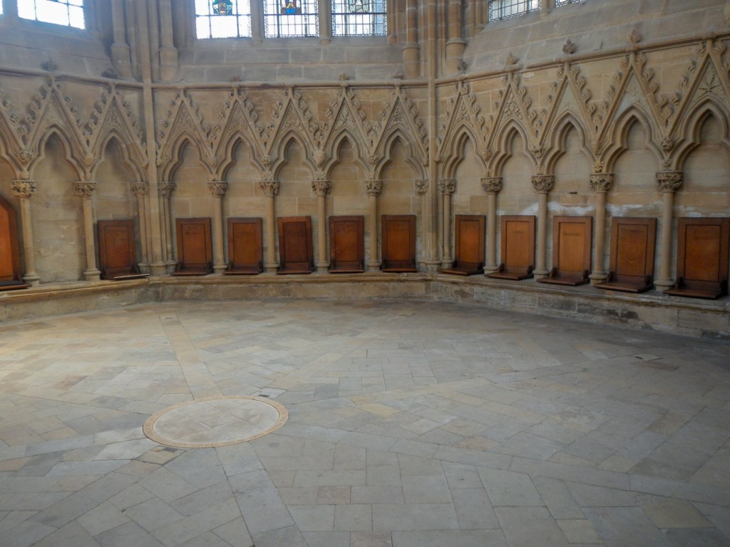 The Minster was built partly as an attached church of the Archbishop of York’s Palace which now stands in ruins (apart from the state chamber) next door to the Minster. The Archbishops of York needed a place to break their journeys between London and York which was the reason for the palace being built. The state chamber was closed but I was able to look at the palace ruins and the gardens.