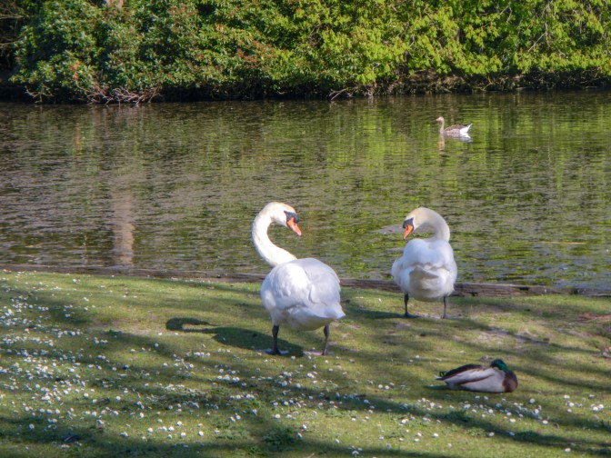 I walked around part of the huge lake – it’s a three and a half mile walk all the way round this lake which has an area of 87 acres – built by the Dukes of Newcastle in the eighteenth century as a grand water feature that would serve as the centrepiece of their magnificent park. I saw many swans, geese, ducks and moorhens but wasn’t fortunate enough to spot a kingfisher. my walk ended by skirting Hardwick Village (the estate village) and reaching the busy A60.