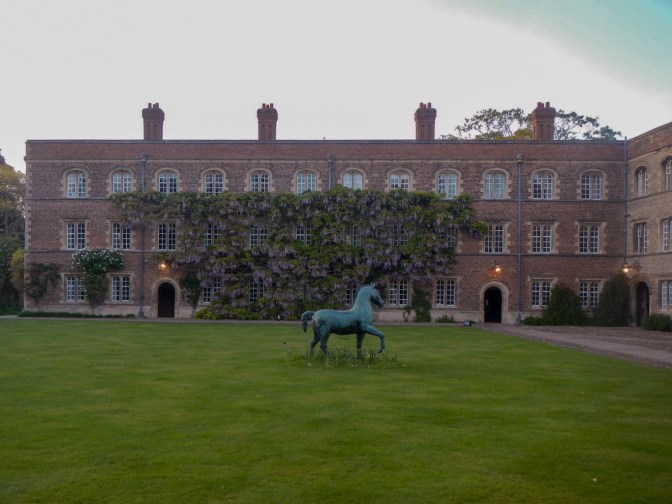 The receptionist who showed me to my room explained that it was fine to spend time wandering round the College. I walked round the outside of most of the huge courts. Wisteria was in full bloom climbing on some of the walls of the buildings. The famous Barry Flanagan sculpture of a bronze horse stands in First Court.