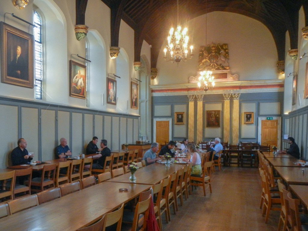 Breakfast is provided in the Great Hall, a magnificent room with tall windows and high vaulted ceilings; on the walls there are portraits of previous Masters and students of the College, as well as the Royal Arms of Queen Anne. The Great Hall has been used for dining and been the heart of College life since its foundation in 1496.