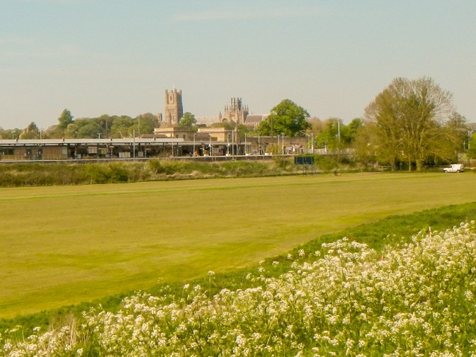 I could see the towers of Ely Cathedral from that point rising up above the flat fens as if on an island or even like the masts of a ship ahead of me. Actually unsurprising as Ely was an island until 400 years ago, when work started to drain the Fens. Gradually the towers became closer and I arrived at the city, the second smallest in England.