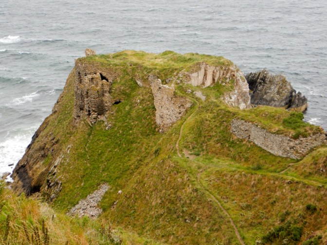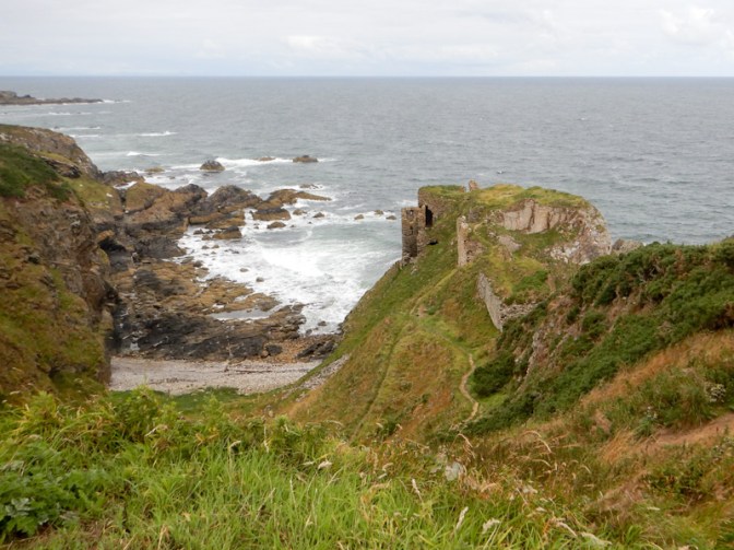 We walked past further low cliffs and suddenly Findlater Castle ruins were in view on the headland. The castle, dating from the end of the fourteenth century, has recently been used as a film location for Christopher Nolan’s film “The Odyssey” so we were fortunate to be able to access the path as there was a diversion during much of June and July.