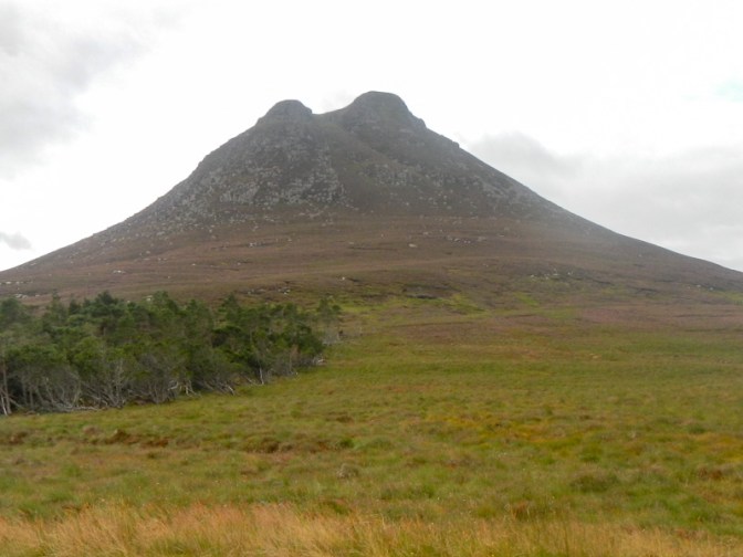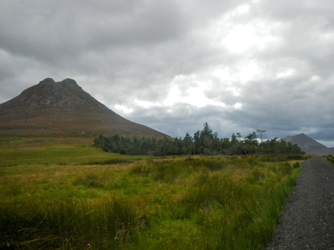 The recent wind had dropped to gusts of only 20mph and the forecast was for a mainly dry day. My husband dropped me off at the end of a six mile side road, terminating as a public road just before reaching Braemore Lodge. It all looked splendidly remote; the peaks appeared to have very steep rocky tops and I wondered how it would be possible to walk to the summits.