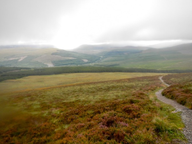 The weather actually dried up a bit as I walked down and I could see a view ahead of me. There was still cloud on the summit though. I made rapid progress and was in the car park under five hours after I had set out. WalkHighlands say the walk takes 4.5-5.5 hours not including breaks so in the conditions, needing to take care not to slip on some of the unlevel wet stone steps, this was fast as it included my lunch break too.