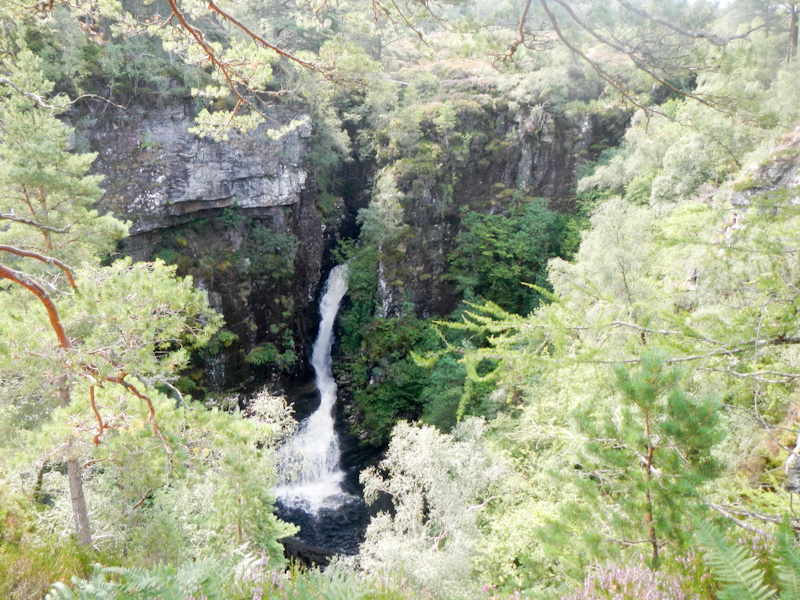 On 13 August, my back was settling so I ventured out on a low level walk from our accommodation at Forest Way Bunkhouse. In the end I walked 18km with just over 460m of ascent. I enjoyed a picturesque expedition near the River Broom and its tributary, Abhainn Cuileig, looking at a couple of impressive gorges and few dramatic waterfalls. I would have missed all this if I hadn’t been injured…… By the way, they’re on map 20.