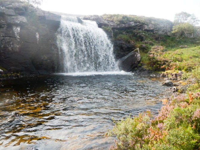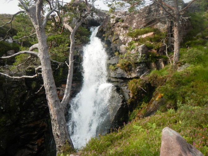 I reached a larger waterfall on the main stream then had to cross a tributary stream flowing from the nearer Glas Tholl corrie. I got wet feet! This isn’t crossable when the stream is in spate and I understood that water levels can rise quickly.