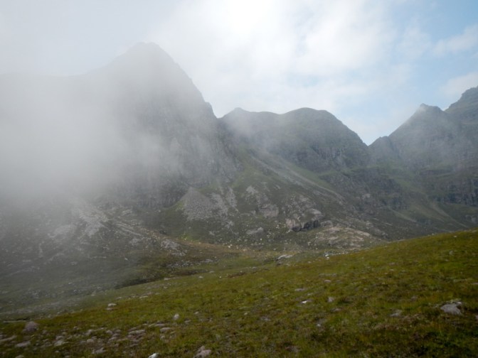 I realised that it was becoming misty again and was resigning myself to the fact that I wasn’t going to see this picturesque corrie in all its glory. The pinnacles that had been visible in the distance disappeared into the cloud.