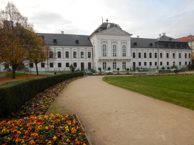 We wandered through the gardens of the presidential palace. The fountains were already turned off for winter but there were many flower beds with pansies thriving. There’s a row of trees each planted by a head of state visiting from other countries soon after the founding of Slovakia in 2003.