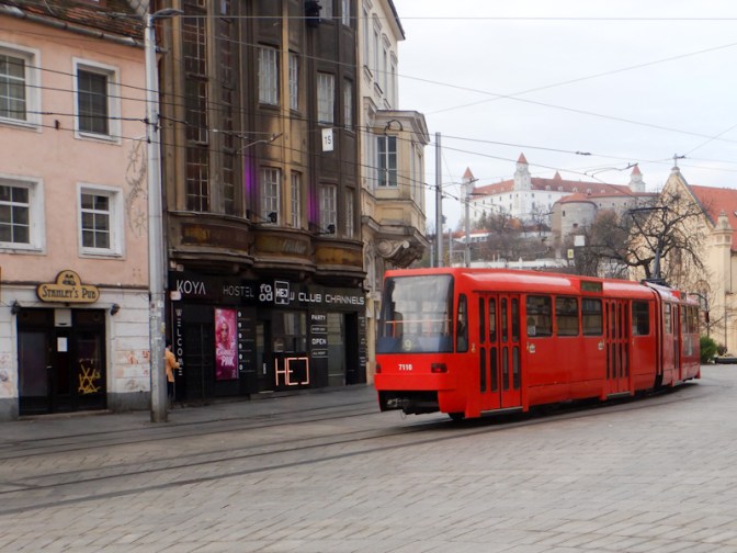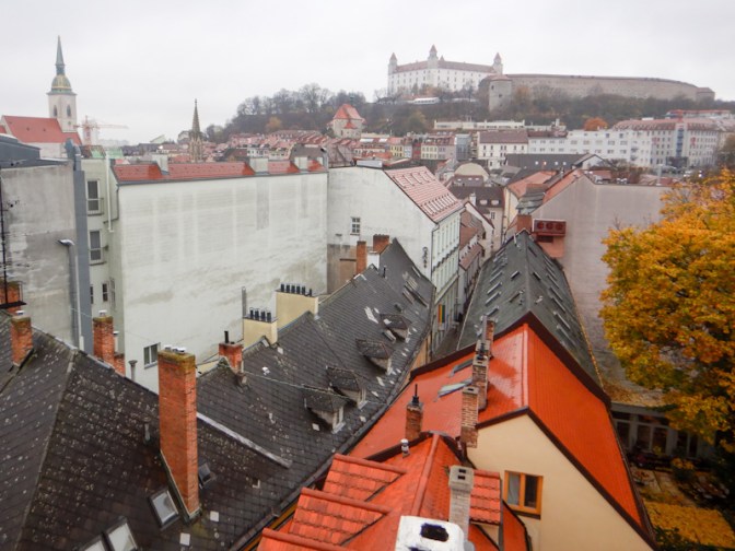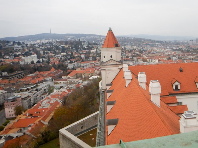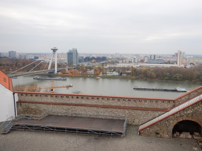 The connecting train was a less luxurious traditional compartment train. We crossed the border from Austria into Slovakia. This was a new country for both of us. The train staff changed from Austrian to Slovakian at the station nearest to the border. Our destination was the capital – Bratislava.