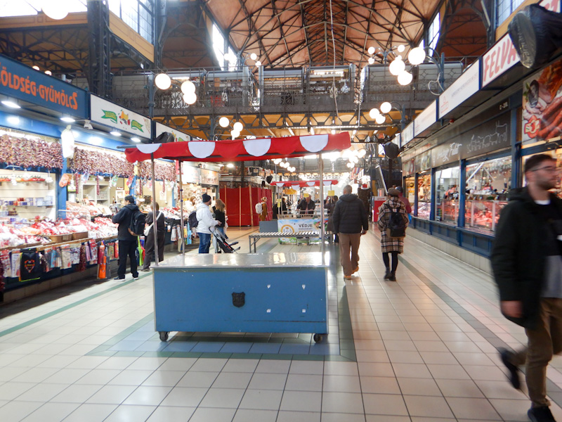 The market is enormous. We strolled round the produce stalls on the ground floor – paprika, sausages, cakes, sweets and fruit were just a few of the offerings – and briefly visited the souvenir and clothing stalls on the floor above.
