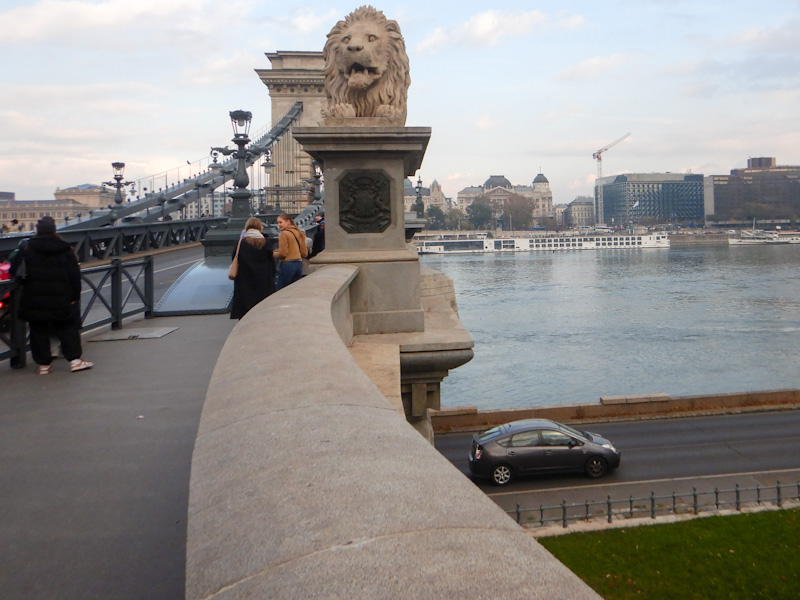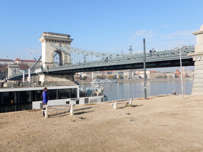 We crossed the river using the chain bridge, opened in 1849 and the first permanent bridge across the Danube in Hungary. Designed by the English engineer William Tierney Clark it’s a larger-scale version of his earlier Marlow Bridge, across the River Thames and was shipped in sections to Hungary. Local construction was supervised by the unrelated Scottish engineer, Adam Clark. It was blown up in January 1945 by the retreating Germans during the siege of Budapest but rebuilt and reopened in 1949.