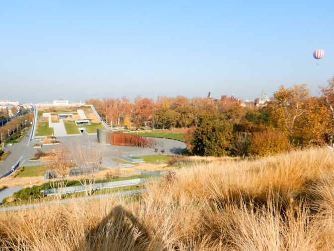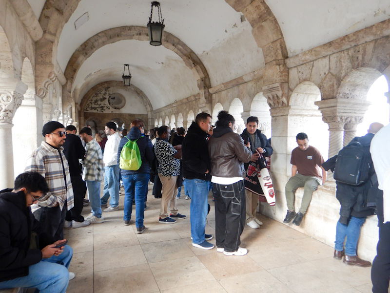 We returned to Heroes Square, which was becoming busy and then turned past the Museum of Ethnography, where we climbed up the sloping grass covered roof on the side steps to reach yet another vantage point.
