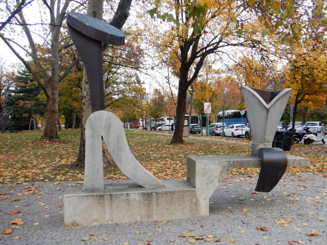 At last we arrived at Vienna. Our hotel was very close to the station. Sadly the delay meant that there was little time to commence our explorations of the city and we just looked at the nearby Swiss Garden where there are lots of sculptures, returning to our hotel past some very futuristic looking apartments and offices.